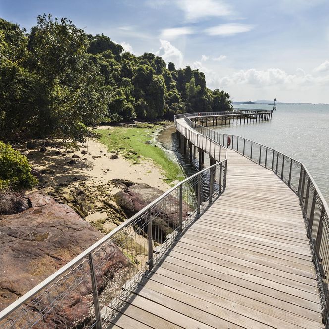 Eine frische Meeresbrise, im Wasser dümpelnde Segelboote, viel Grün und eine Sonne, die im Meer glutrot versinkt – besonders spätnachmittags ist der Changi Point Coastal Walk der ideale Ort, um einen Tropentag ausklingen zu lassen. Der gut angelegte, 2,2 km lange Uferweg beginnt beim Fähranleger am Changi Creek und führt bis zur weiter westlich gelegenen Felsküste, wo er in der Nähe des Changi Beach Clubs endet.