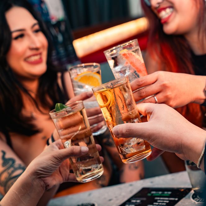 Dank der Wärme der Rattanlampen über den Köpfen herrscht im schmalen, langgezogenen Bar-Raum eine gemütliche Atmosphäre. Seit 2022 ergänzt ein Gastro-Pub im Erdgeschoss das Angebot.