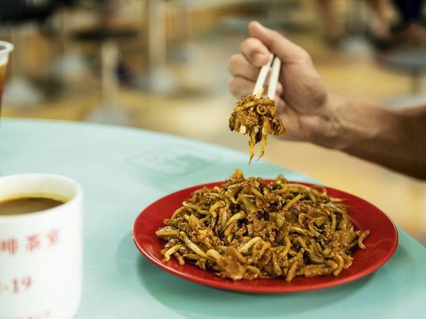Das beliebte Nudelgericht wurde von Hokkien-Chinesen nach Singapur gebracht und ist in nahezu allen Hawker-Zentren zu finden. Der Name ist Programm: „char“ bedeutet „gebraten“ und mit „kway teow“ sind flache Reisnudeln gemeint. Da schnell und günstig zubereitet, war es zunächst vorwiegend in der Arbeiterklasse beliebt. Doch das subtil süßliche Aroma macht es heute zu einem der gefragtesten Gerichte in allen Gesellschaftsschichten.